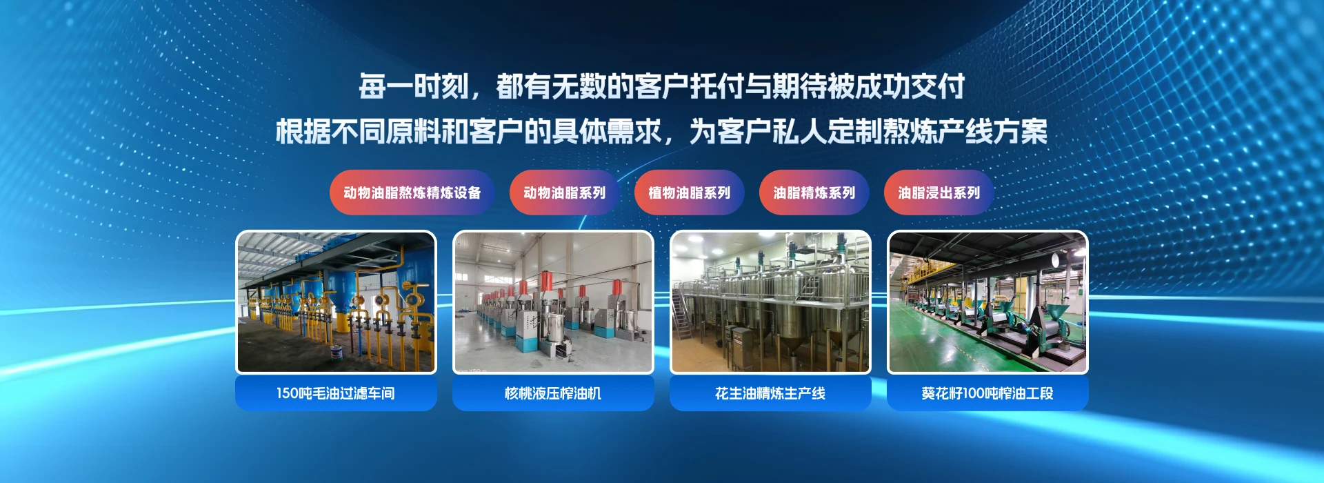公司集科研、生产、安装、调试、售后服务为一体 的现代化油脂成套设备生产厂家;